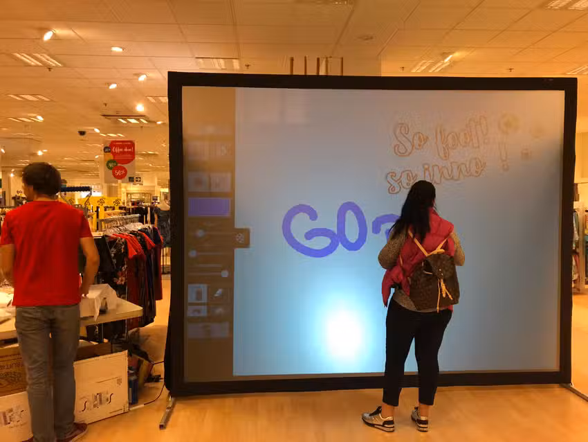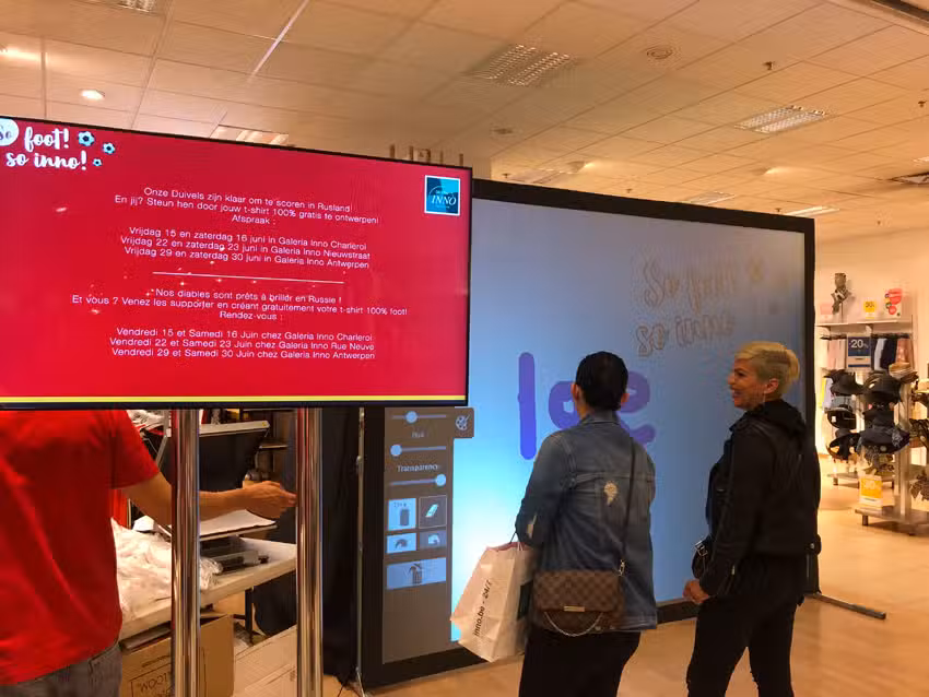 Voor INNO hebben we onze digitale graffiti wand ingezet op locatie in Antwerpen en Brussel. Tijdens deze instore activatie zijn de op de graffiti wand gemaakte creaties direct geprint op t-shirts die daarna door het promoteam zijn meegegeven aan de bezoekers.